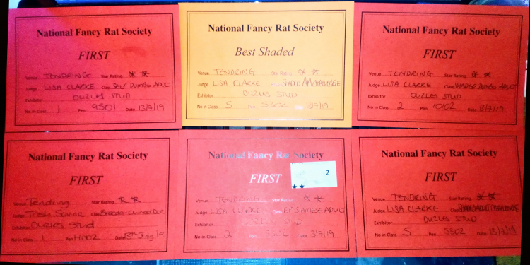 All shows were cancelled for a couple of years and, as rats can catch the Omicron Variety, to protect their rats, Ouzles has not yet recommenced showing.